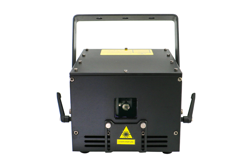 特点 1.专业级别户外激光灯,采用封闭结构设计,达到IP67防护级别。 2.采用两层独立结构设计,上层为光源和电气层,下层为大型散热器层。 3.激光器采用高稳定长寿命的固体激光二极管(Diode Solid-State Laser),可在-20°C--40°C全天候工作。 4.激光器采用数字驱动技术,线性控制激光亮度,色彩艳丽。 5.操作界面:LCD显示,触摸按键操作。 6. 安全配置:激光单点电子保护、激光钥匙开关,远程INTERLOCK接口。 7. 安全智能:扫描电机或控制系统失效,导致单点激光,系统自动关闭激光。 8. 应用场所:室外室内各种激光特效(文字、图案、LOGO,激光表演),室外灯光景观工程 技术参数 1.电源:输入电压100~250V/AC,50/60HZ,最大功率90W 2.激光参数: AS05RGB:红激光功率1500mW,激光波长638nm 绿激光功率1500mW,激光波长525nm 蓝激光功率2000mW,激光波长450nm 3.激光寿命:>10000小时 4.激光安全等级:Class 4 5.防护级别:IP67 6.工作环境:室外室内,-20°C--40°C 7.扫描系统:LY30K,30KPPS ILDA @8°,最大扫描角度50°,±5V信号输入; XY轴镜片:7*长12mm 8.控制模式:ILDA模式(PC控制),DMX-512模式,自走; 可选配PANGOLIN公司的FB4控制系统 9.控制接口: RJ45-ILDA接口 3PIN XLR佧侬座接口 10.机器尺寸:210(L)*175(W)*135(H)mm 11.净重:4.7Kg